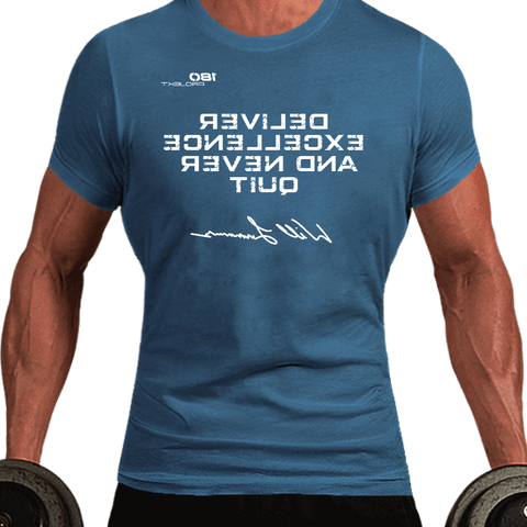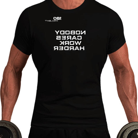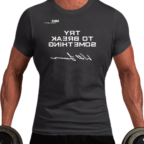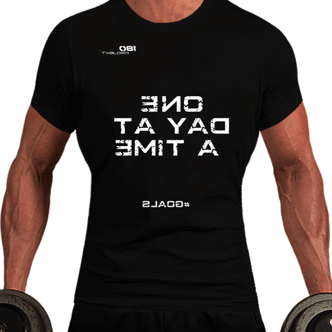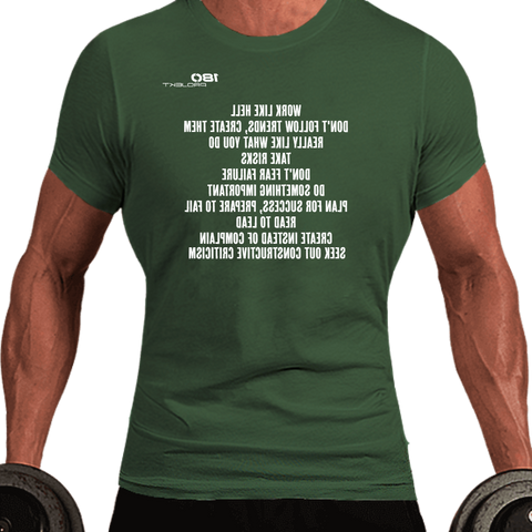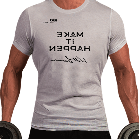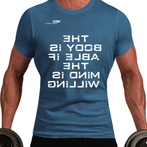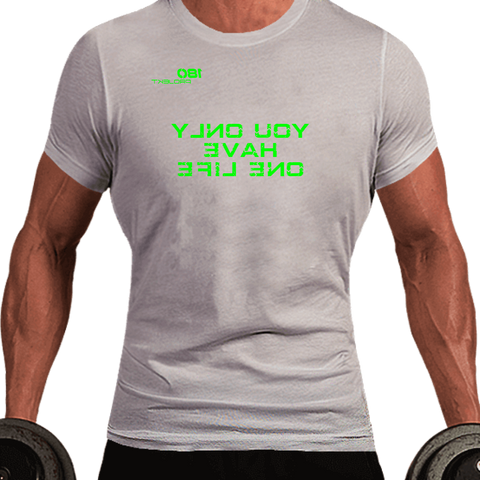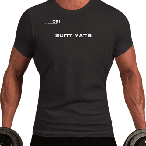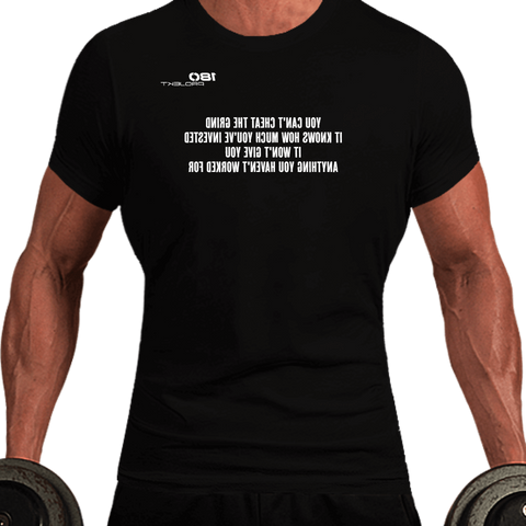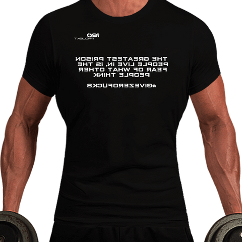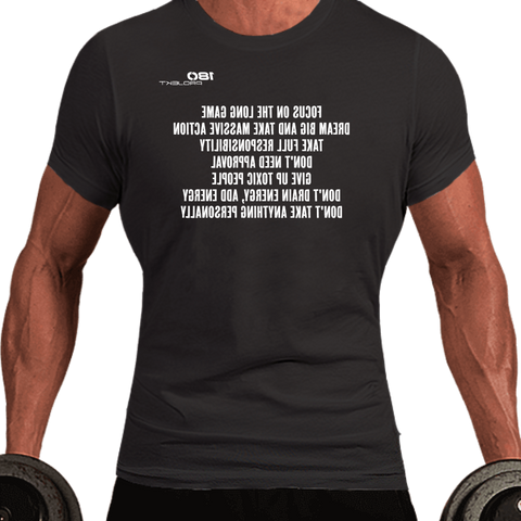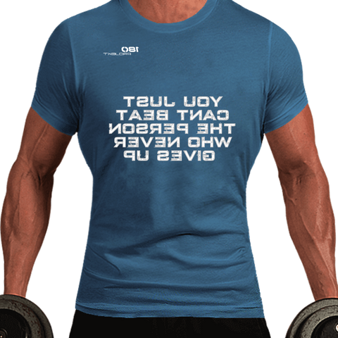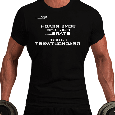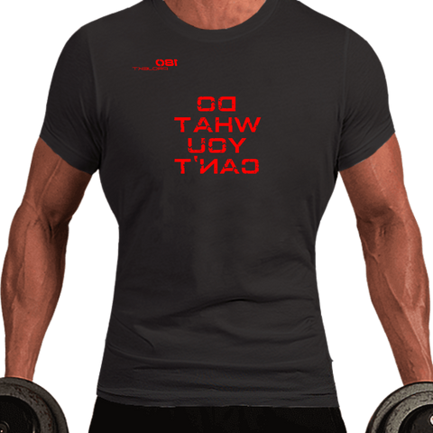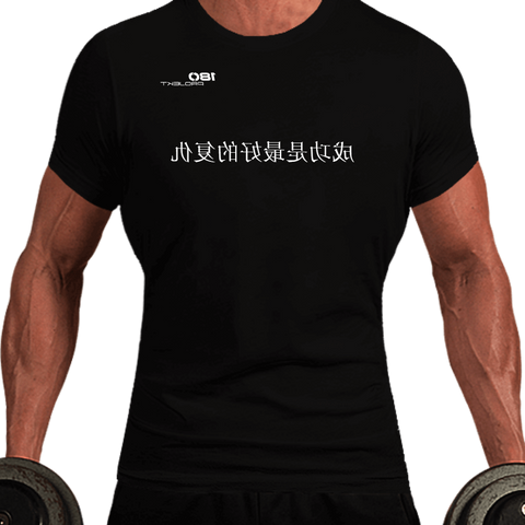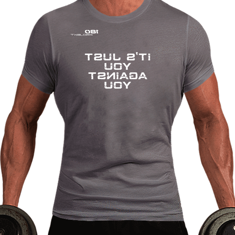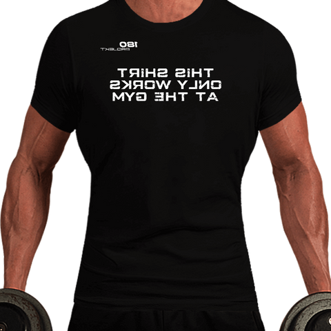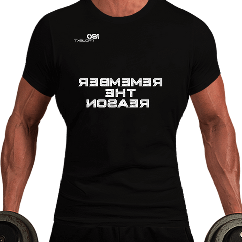 Your eyes aren't deceiving you! Our shirts are purposefully designed with a reverse image so that when you head to the gym or pass your reflection, you are reminded that you are your own motivation.