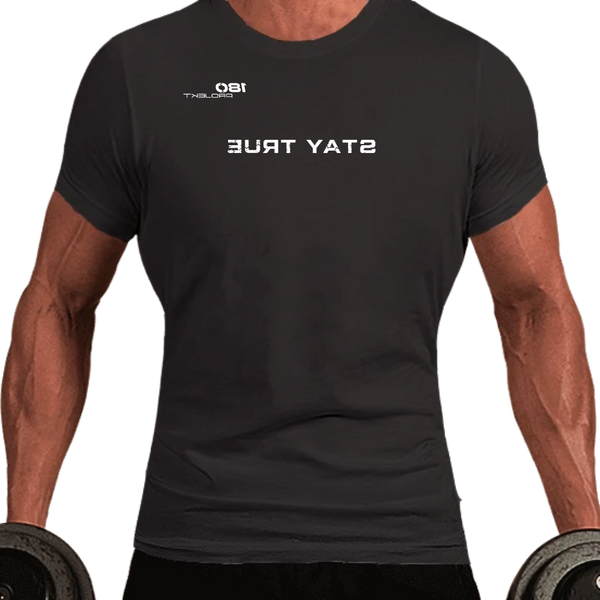 Your eyes aren't deceiving you! Our shirts are purposefully designed with a reverse image so that when you head to the gym or pass your reflection, you are reminded that you are your own motivation.