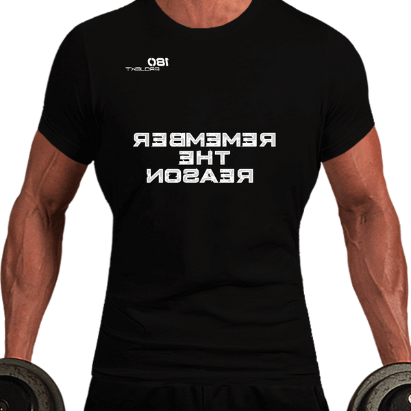 Your eyes aren't deceiving you! Our shirts are purposefully designed with a reverse image so that when you head to the gym or pass your reflection, you are reminded that you are your own motivation.